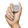 Este glitter tiene gruesos trocitos de color gris plateado mezclados con pequeños destellos iridiscentes. No es un glitter de cobertura completa, lo que lo hace suave y delicado. ¡Este color destaca con mucha sutileza!.