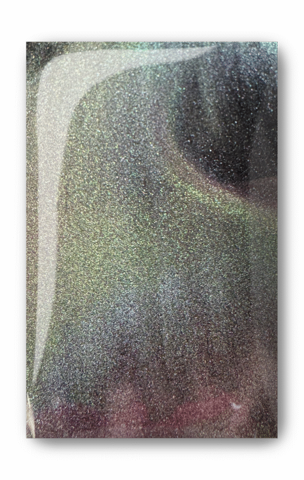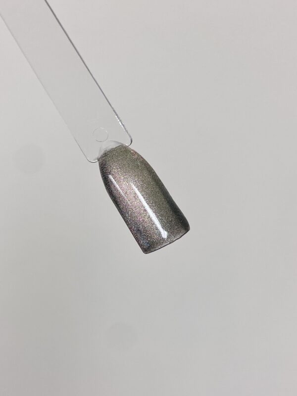 Este gel con efecto magnético de ojo de gato negro con un cambio de multicolor con rosa púrpura, verdes y dorados. ¡Extremadamente cósmico!. Se requiere imán para activar el efecto magnético