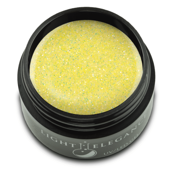 Martini con gotas de limón en gel con glitter: ¿qué podría ser más divertido? Este glitter gel con partículas amarillas brillantes que brillan con ligeros destellos dorados y amarillos, pero a la vez es suave y dulce, ideal para usarla con frecuencia.
